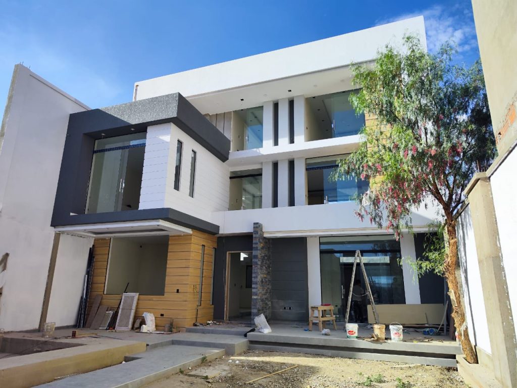 Un proyecto que ejemplifica nuestra visión de la arquitectura residencial moderna. Diseño de tres niveles con fachada minimalista que combina blanco puro con acentos en gris oscuro y madera natural. Grandes ventanales con perfiles negros que maximizan la iluminación natural y crean una conexión visual entre interior y exterior.