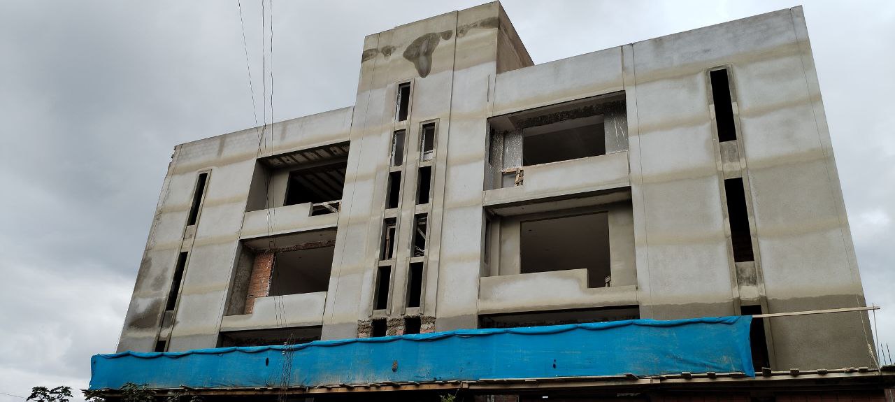 Estructura de hormigón armado con sistema de losas aligeradas. Levantamiento progresivo nivel por nivel con supervisión técnica constante.